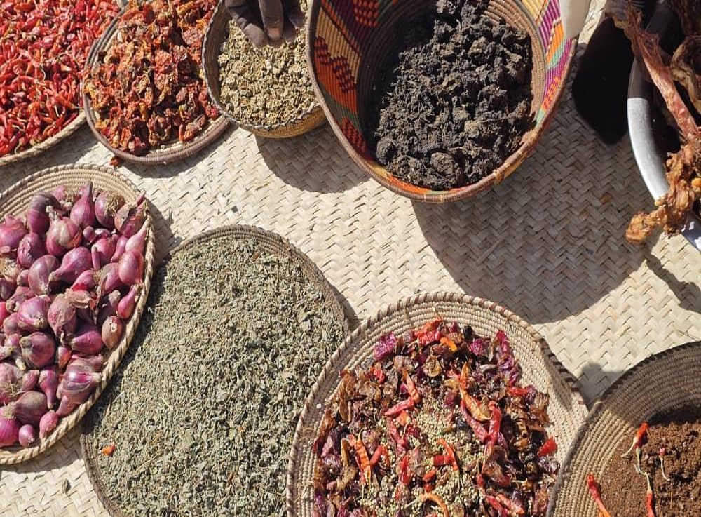 Saveurs authentiques du Ouaddaï : oignons, piments, herbes et préparations locales. Denrées et condiments traditionnels d’Abéché, témoins d’un savoir-faire culinaire transmis de génération en génération